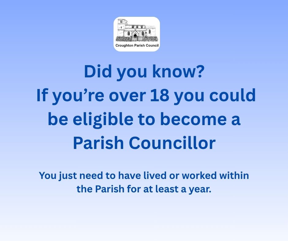 Have you ever thought about becoming a Parish Councillor? There are currently 4 vacancies on Croughton Parish Council which will be filled by co-option.
